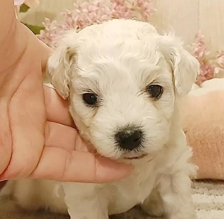 ビションフリーゼ 2023年12月25日生まれ 愛知県知多市岡田美城ケ根53-1 毛色 ホワイト PR 小さなお母さんから産まれました。 価格 248,000円(税込) PR 小さなお母さんから産まれました。